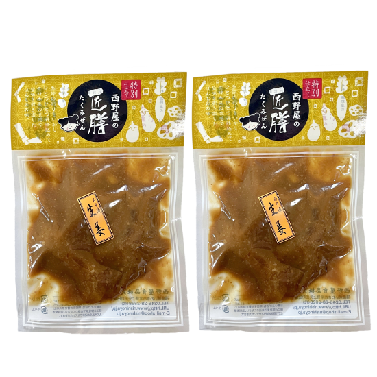 ■原材料:生姜、漬け原材料(ふどう糖果糖液糖、たんぱく加水分解物、みそ、砂糖、発酵調味料、醤油、醸造酢、食塩)/調味料(アミノ酸等)、酸味料、保存料(ソルビン酸K)、(一部に小麦・大豆を含む)